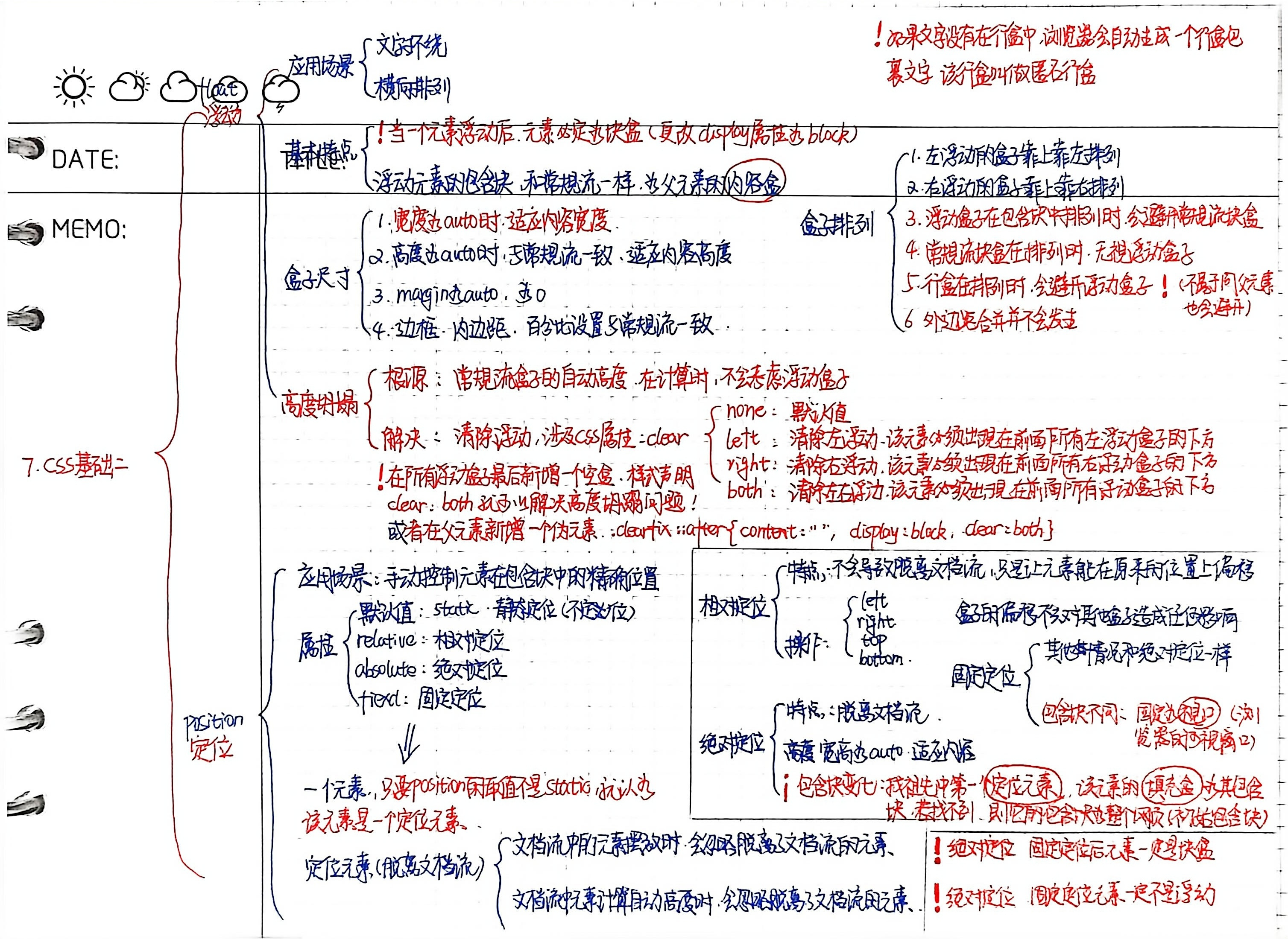 - 浮动:让元素横向排列,会导致父元素高度塌陷,需通过